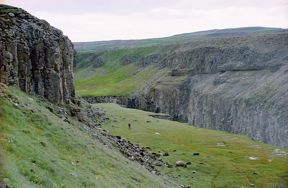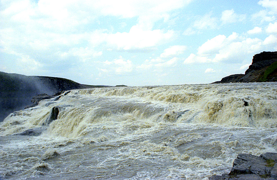 Nedanför Gullfoss har floden karvat ut enormt djupa kanjoner i berget. |