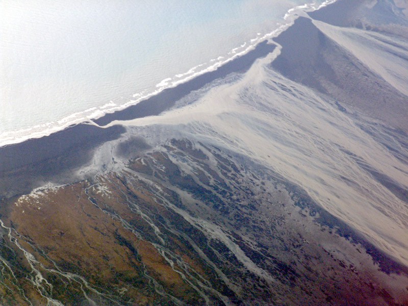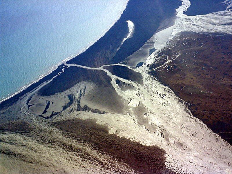 Så närmar vi oss kusten och här är ett av ställena där Vatnajökull rinner ut
