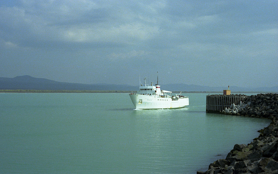 Atlantvattnet är absolut grönt och jag stod länge fascinerad när denna rostiga färja gled