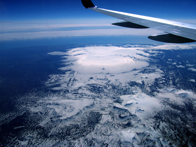 Man flyger naturligvtvis till Island. Har man tur, som här, får man en fantastisk vy av Europas största