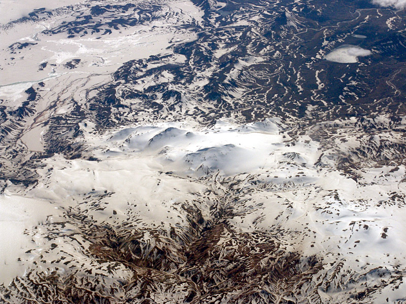Lavafält från luften. Här ser man hur vattnet kan gräva ut kanjoner i lavan. |