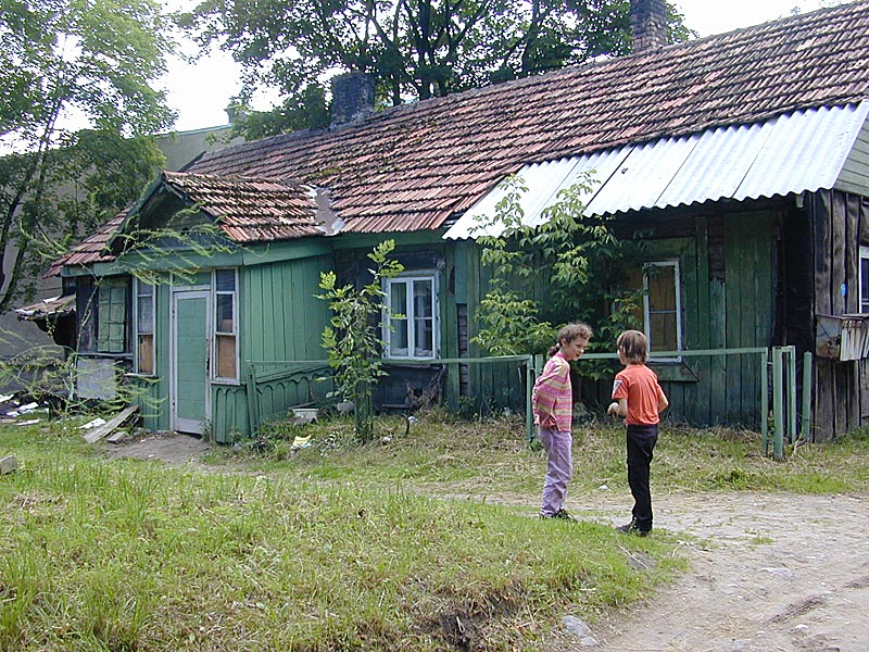 Bilden visar en fattig stadsdel i Vilnius, vars innevånare man ser ned på. Men det är orättvist