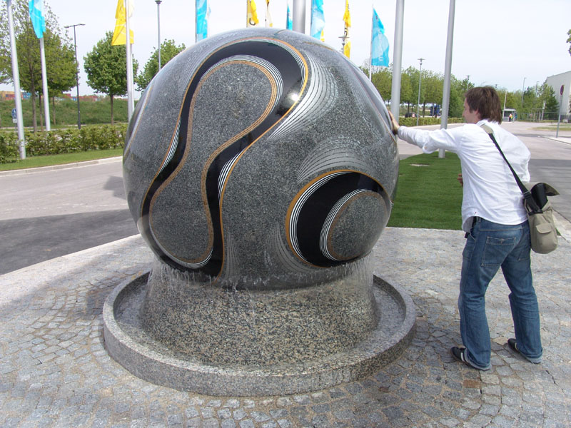 Fotbollen i sten utanför entrén var mycket tung att vrida. Men det gick. Sen kom vakterna springande.