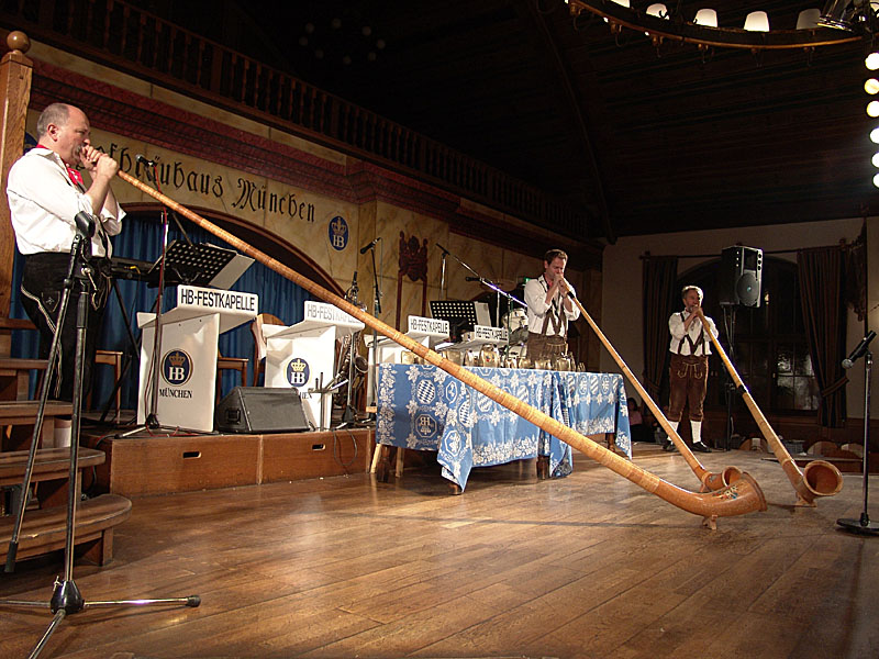 mycket öl och korvar som möjligt, under så mycket högljutt hojtande och alphornstruddel som