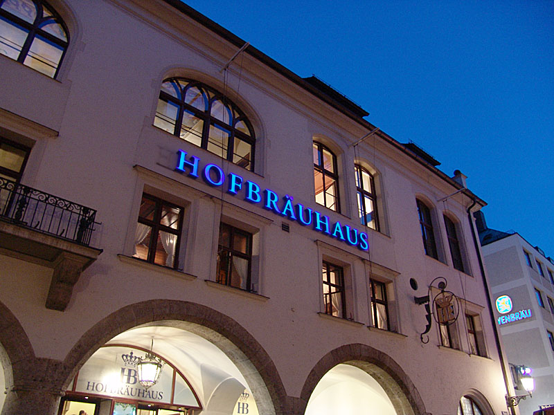 HB står det på skylten såväl som på ölet: Hofbräuhaus. |