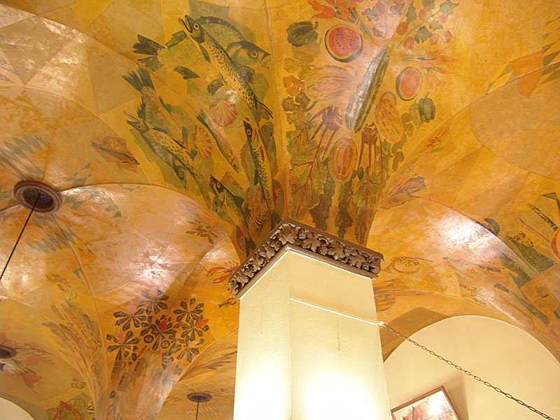 Men det är stil på stället. Här är det gäddor som kommer upp ur en pelare. |