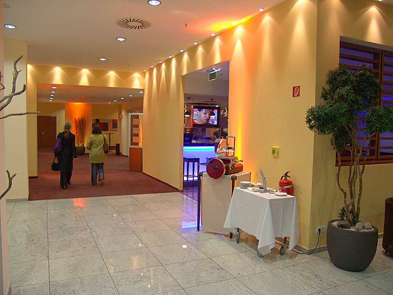 den oerhört blanka italienskdesignade skinkskärmaskinen i lobbyn imponerade.